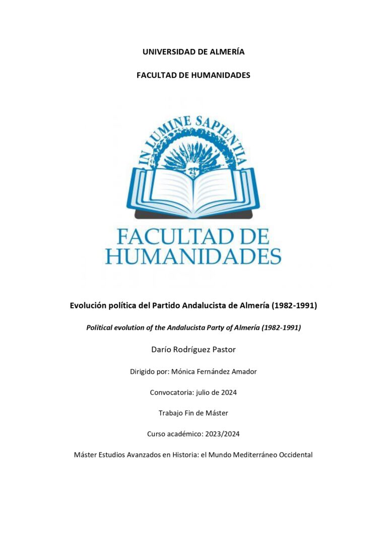 Este Trabajo de Fin de Máster analiza la evolución del Partido Andalucista (PA) tras la victoria socialista de 1982, destacando su necesaria transformación para sobrevivir en un contexto de bipartidismo. El punto de inflexión fue el congreso de 1984, donde la formación abandonó el socialismo para centrarse en un andalucismo renovado que buscaba atraer votos de centro. En Almería, el partido enfrentó una situación crítica tras perder su representación municipal en 1983, agravada por el transfuguismo y un escaso arraigo social. Pese a estar fuera del consistorio, mantuvo una oposición extraparlamentaria mediante notas de prensa y reuniones con colectivos locales. Esta estrategia municipalista permitió un breve repunte electoral en 1991, aunque las luchas internas personalistas terminaron lastrando sus aspiraciones a largo plazo.